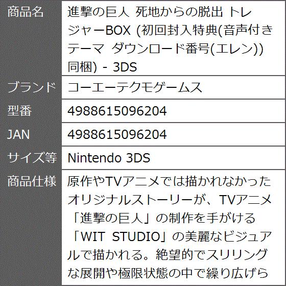 進撃の巨人 死地からの脱出 トレジャーbox 初回封入特典 音声付きテーマ ダウンロード番号 エレン 同梱 Nintendo 3ds 2bfob9migb ゼブランドショップ 通販 Yahoo ショッピング
